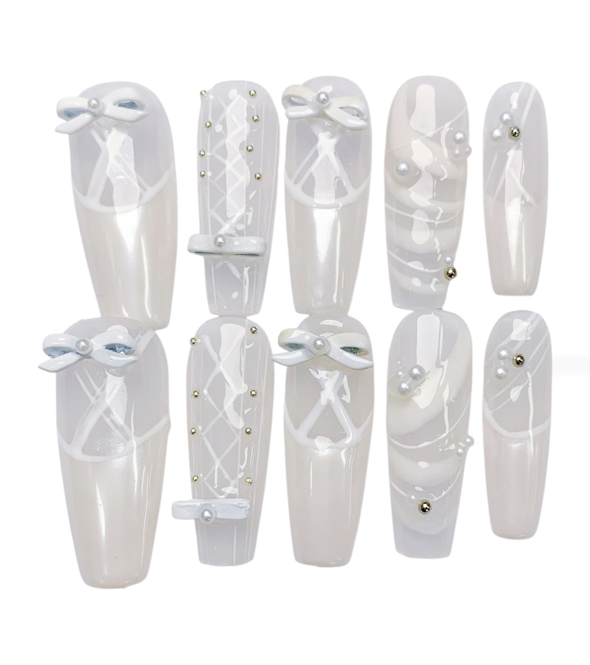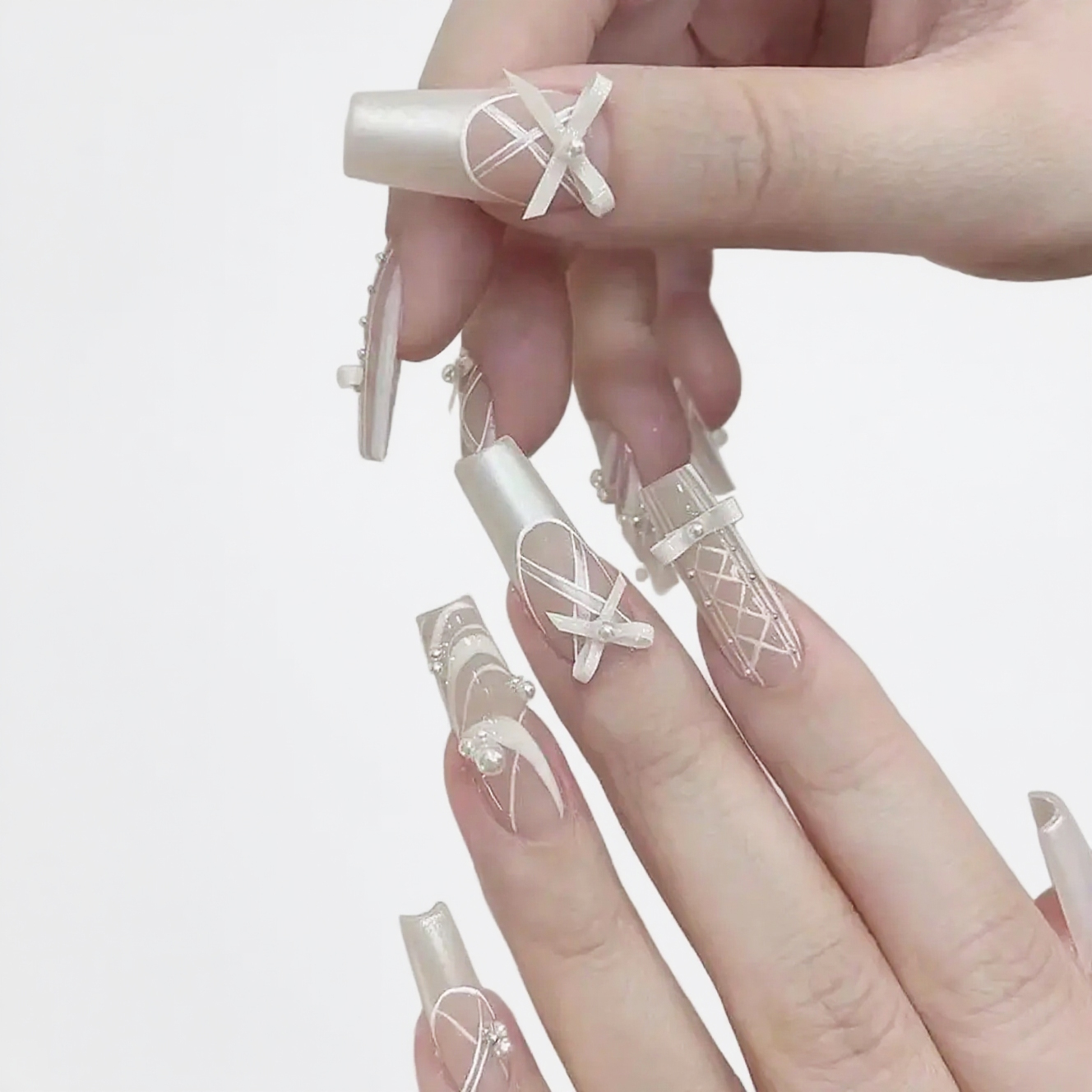 Mit Pearl Bow setzt du auf schlichte Eleganz und einen Hauch von Romantik. Das zarte Weiß mit Perlen- und Schleifendetails sorgt für einen stilvollen und femininen Look – perfekt für Hochzeiten, Partys oder den Alltag.