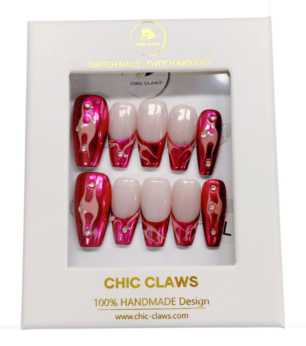 Das Ruby Shine Nageldesign bringt Glamour und Eleganz auf deine Nägel! Das kräftige Rubinrot kombiniert mit zarten Highlights und funkelnden Strasssteinen sorgt für einen luxuriösen Look, perfekt für besondere Anlässe oder einen stilvollen Alltagslook.