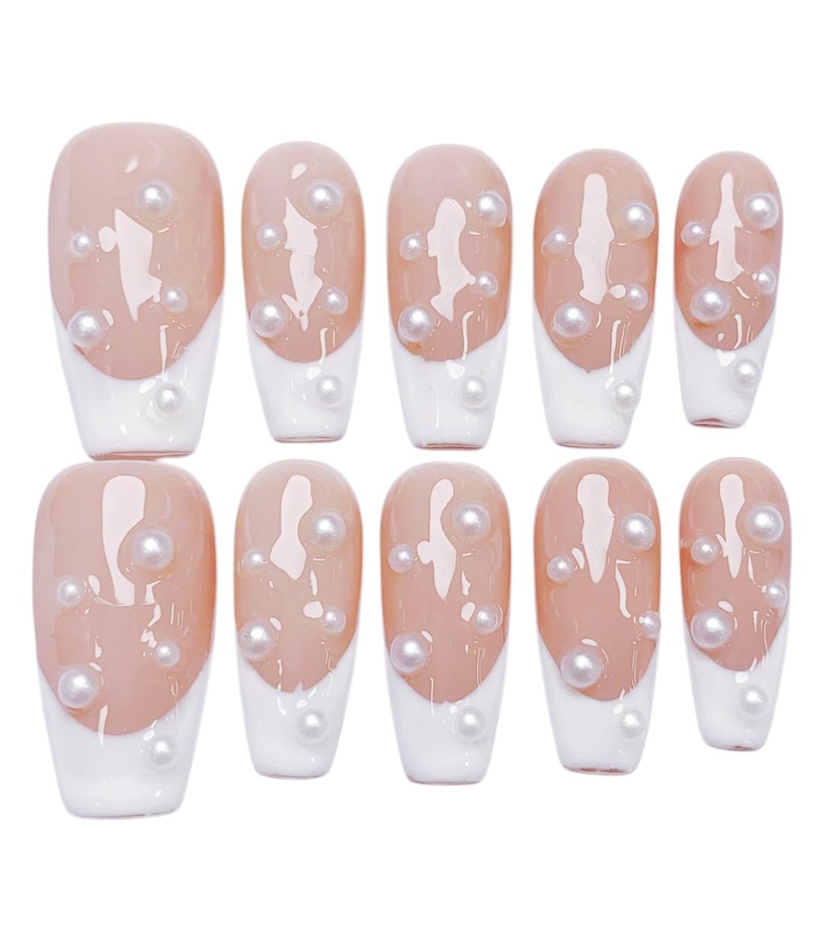 Verleihe deinen Nägeln einen Hauch von Luxus mit dem Pearl Elegance Nageldesign! Diese handgefertigten Press-on Nails kombinieren ein zartes Nude-Design mit schimmernden Perlen, die für einen besonders edlen Look sorgen.