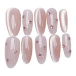 Das Elegant Rose Shine Nageldesign vereint zeitlose Eleganz mit einem Hauch Glamour. Die zarten Rosé-Töne gepaart mit funkelnden Strass-Steinen machen dieses Design perfekt für besondere Anlässe, Hochzeiten oder den Alltag.