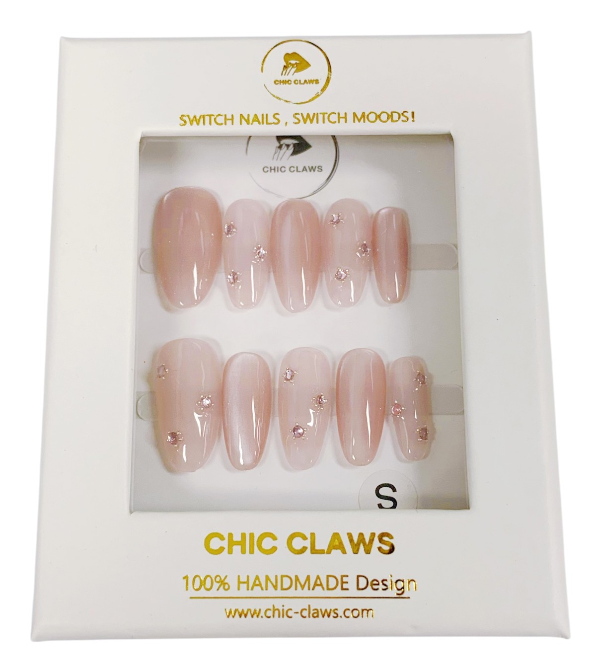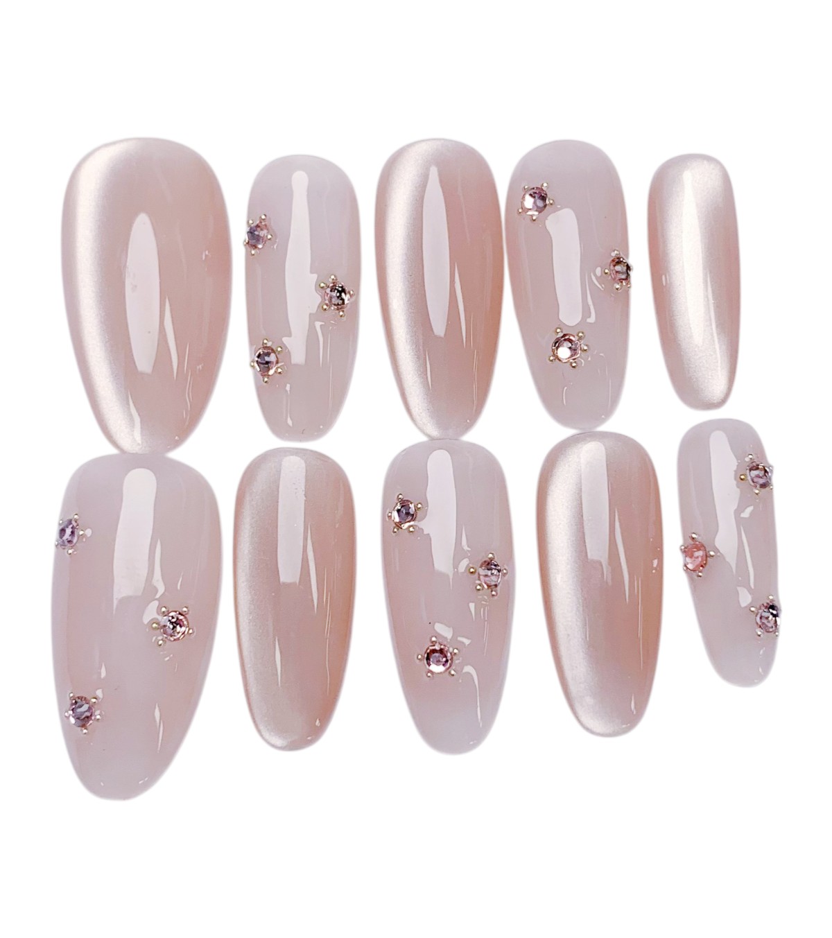 Elegant Rose Shine – Zarte Rosé-Nägel mit Strass-Akzenten