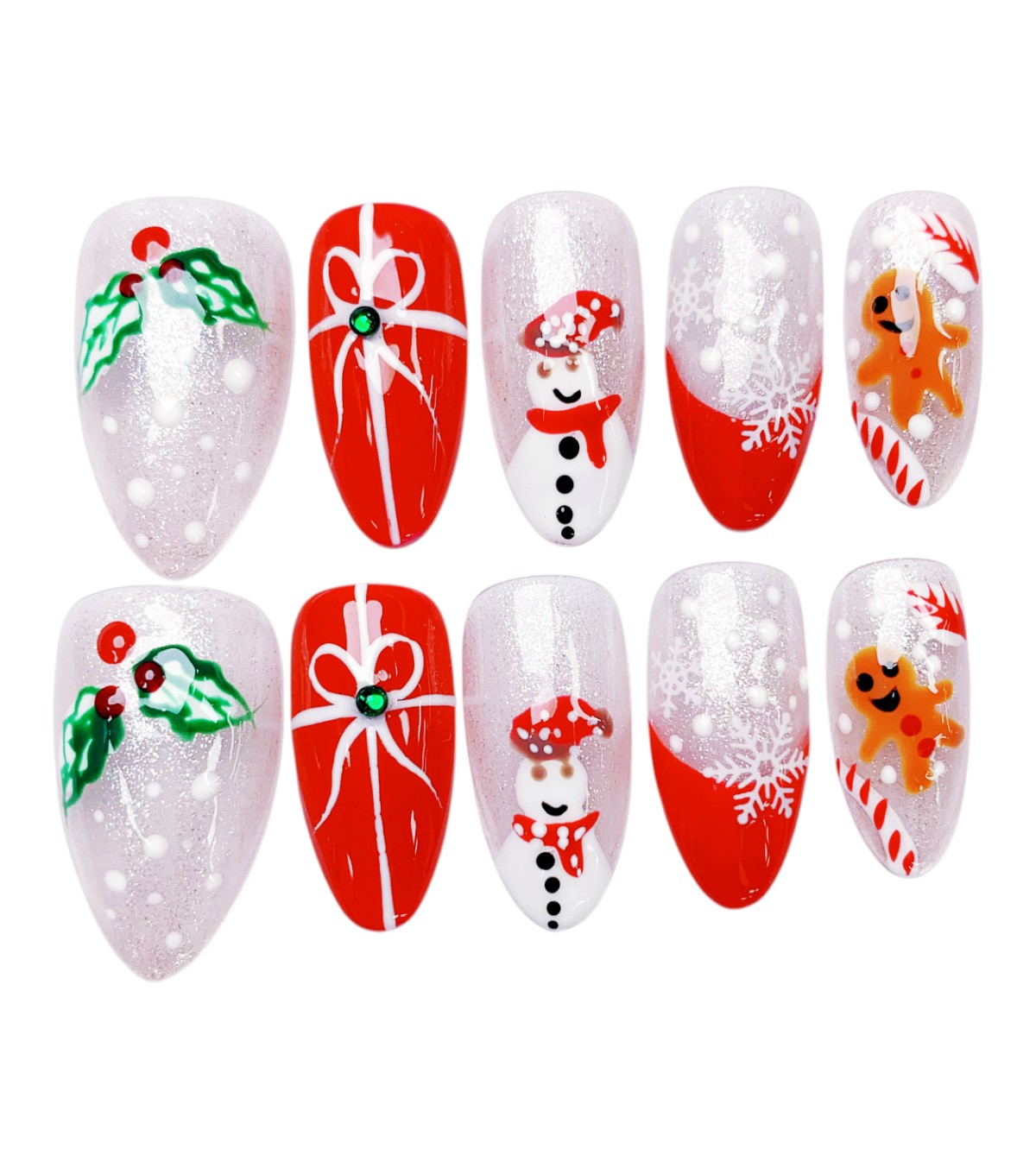 Dieses Design kombiniert Schneemänner, Lebkuchenfiguren, Geschenk-Motive und weihnachtliches Grün für den perfekten Holiday-Look. Die fröhlichen Farben und winterlichen Motive sind ideal für Weihnachtsfeiern, den Heiligabend oder als Hingucker im Alltag.