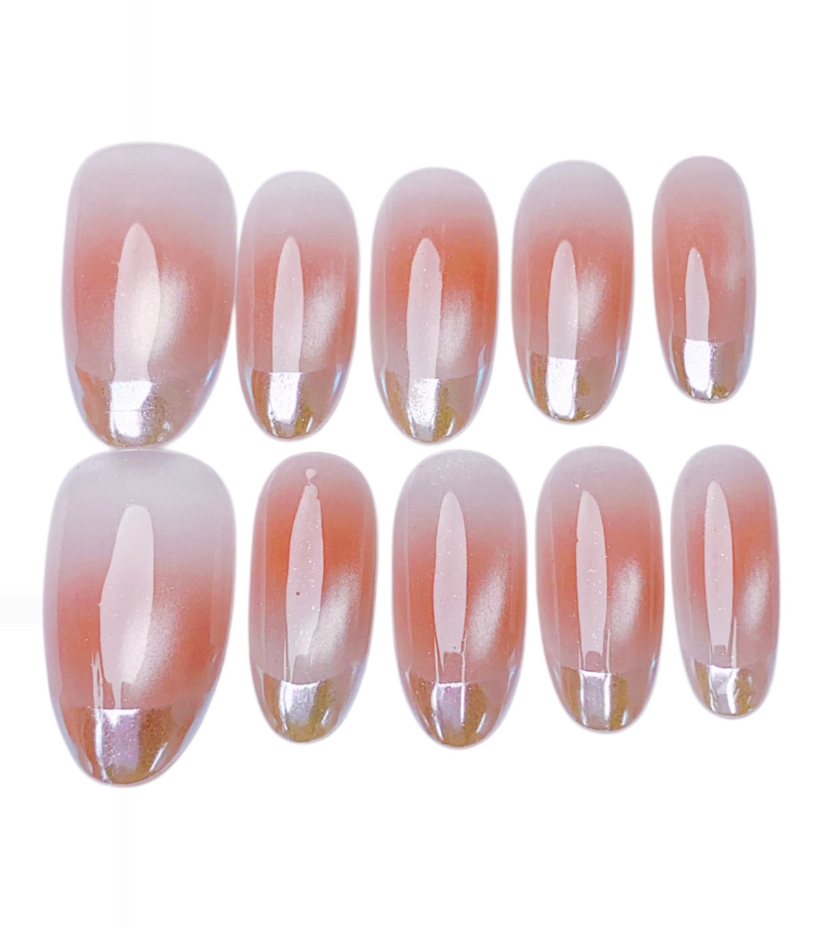 Verleihe deinem Look mit den handgefertigten Sunset Glow Press-on Nails einen Hauch von Sonnenuntergangs-Romantik. Die zarten Farbverläufe mit warmem Glanz bringen Wärme und Stil auf deine Nägel – ganz ohne Nagelstudio.