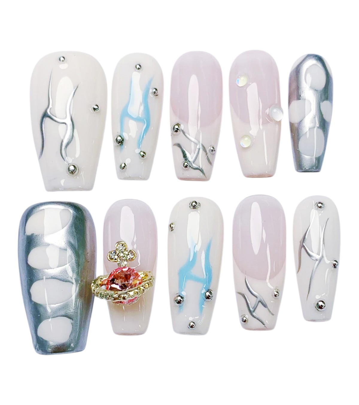 Unsere handgefertigten Press-On Nägel sind einfach anzuwenden, wiederverwendbar und überzeugen durch ihre hochwertige Verarbeitung. Ideal für Fashionistas, die einzigartige Designs lieben.