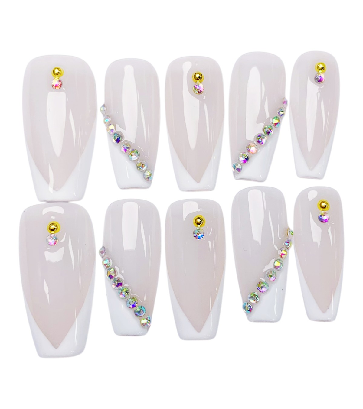 Die Crystal French Press-on Nails vereinen das klassische French-Design mit luxuriösen Kristall-Details. Für einen Look, der sowohl stilvoll als auch glamourös ist – perfekt für Hochzeiten, Partys oder besondere Anlässe.