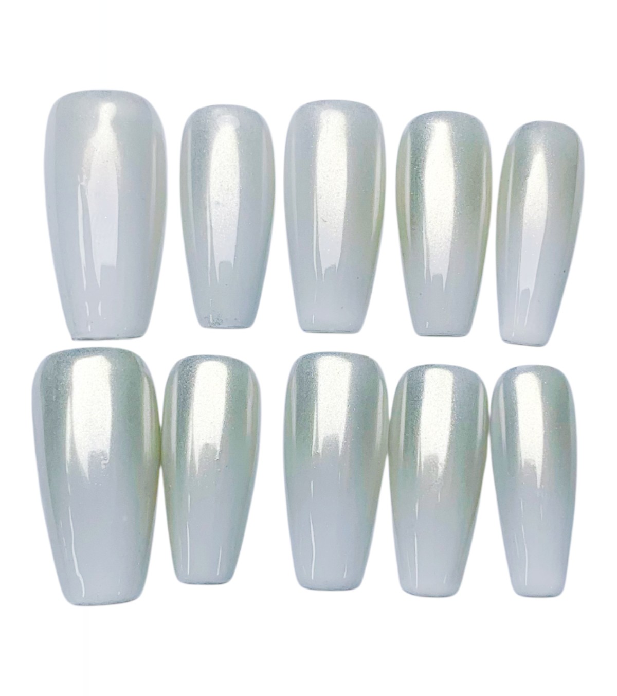 Mit den handgefertigten Frosty Glow Press-on Nails zauberst du im Handumdrehen ein elegantes, schimmerndes Nageldesign, das wie ein sanfter Winterzauber wirkt. Perfekt für alle, die zeitlose Schönheit und flexible Anwendung lieben.