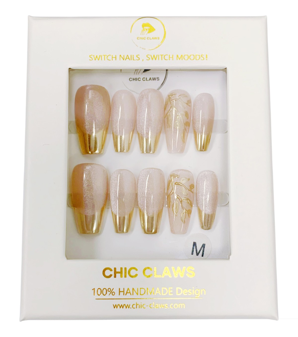 Verleihe deinem Look luxuriösen Glanz mit unseren handgefertigten Gold Leaf Press-on Nails.
