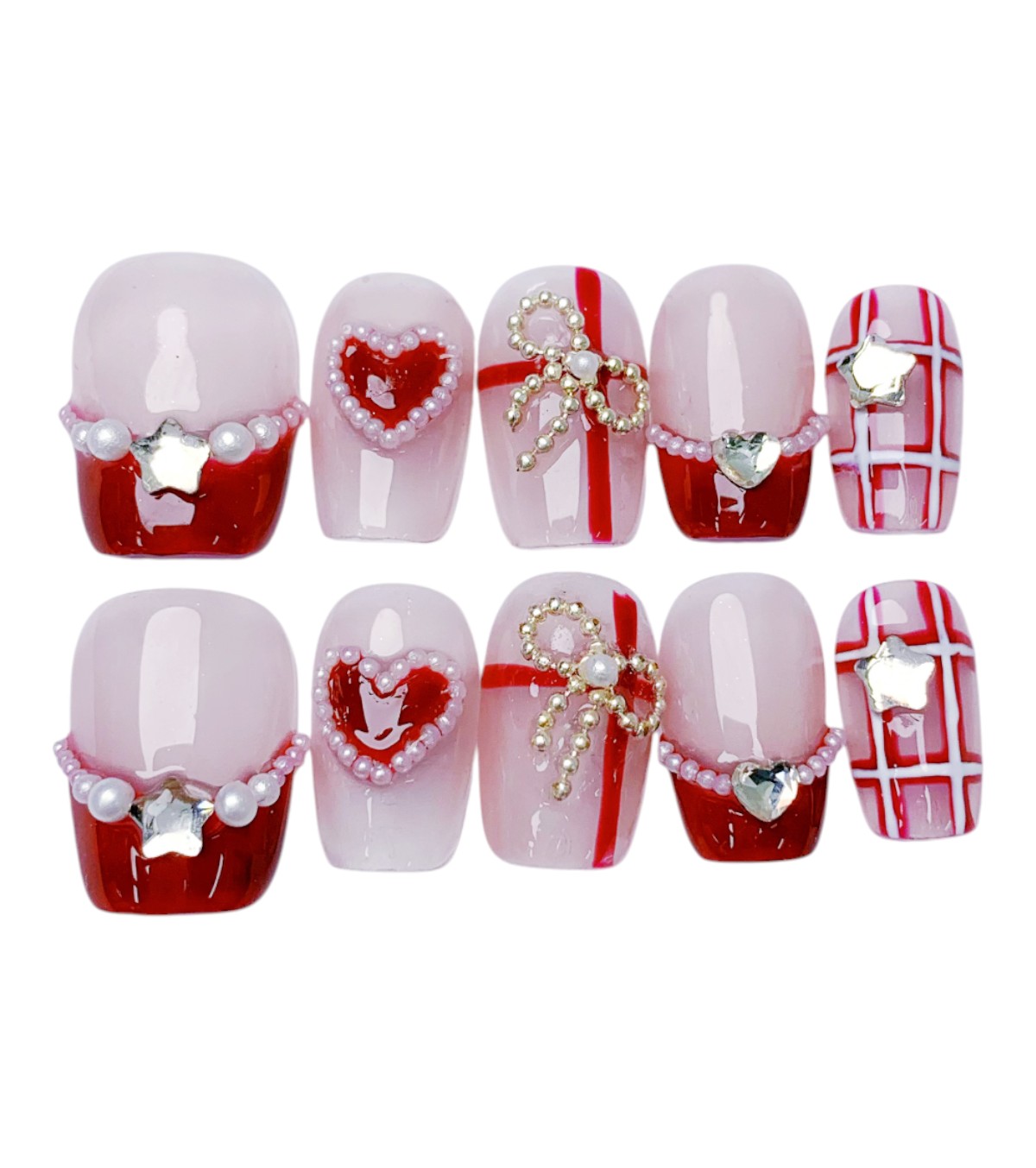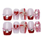 Das Romantic Heart & Bow Nageldesign vereint Romantik und Eleganz. Mit roten Herz-Details, zarten Perlenbändern und funkelnden Schleifen entsteht ein verspielter, aber edler Look. Perfekt für den Valentinstag, romantische Dates oder einfach, um Liebe auf den Nägeln zu tragen.