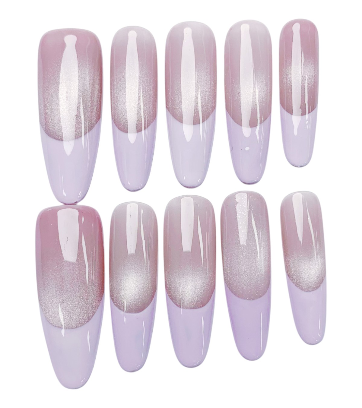 Die Lavender Dream Nails vereinen die Sanftheit von Rosé mit dem kühlen Schimmer von Lavendel in einem traumhaften Ombre-Effekt. Ein zeitloser Look für alle, die es elegant und dezent lieben.