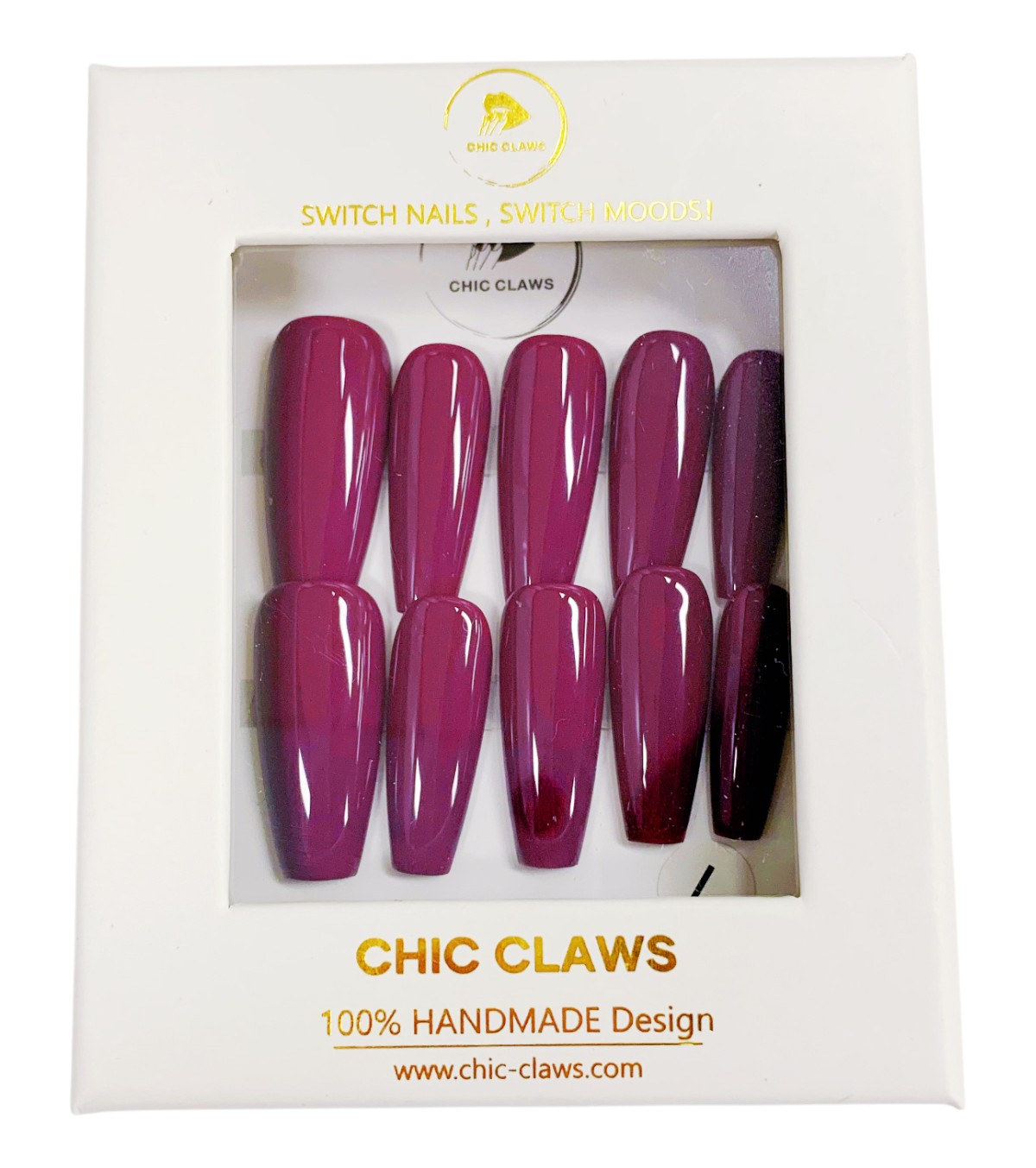Die Berry Glam Press-on Nails bringen mit ihrem satten Beerenton und hochglänzendem Finish sofort Glamour auf deine Nägel. Perfekt für einen selbstbewussten Look mit Stil.